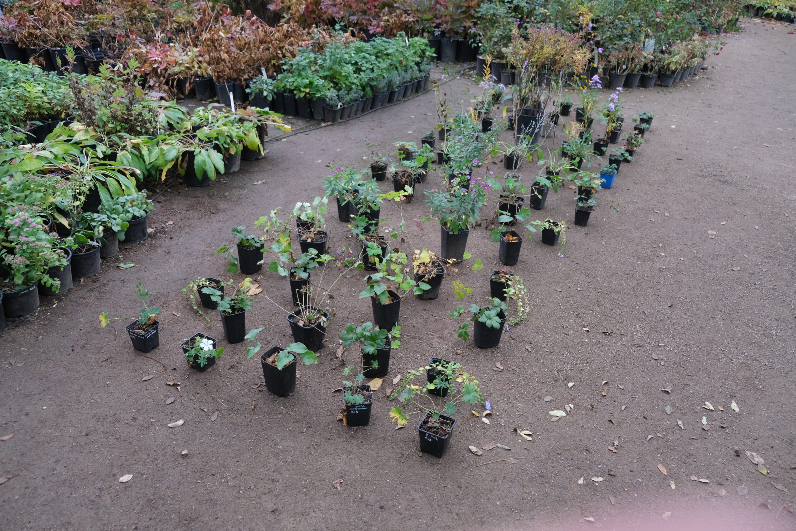 Tak například denivka s denivkou si dobře bude nejspíš rozumět i při vzdálenosti kolem třiceti centimetrů a vydrží spolu celé dekády. Zejména budou-li odrůdy podobné výšky a síly. To už je tak nějak úlohou autora záhonové kompozice, aby tyhle vztahy vyladil. Nicméně i když dělám „rozhoz“ podle osazovacího plánu jehož nejsem autorem, stále mám jistý prostor pro interpretaci. Rostliny jsou například napěstovány různě silné a v různě velkých květináčích anebo mám stále častěji k dispozici dobývané trsy. To je samozřejmě parádní práce. Umožňuje mi sázet takzvaně na cílový spon.